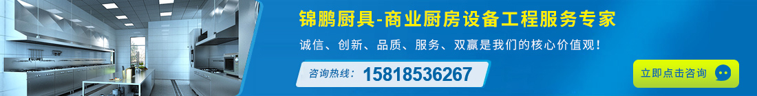 錦鵬廚具是一家專業(yè)從事星級酒樓、食堂、學(xué)校、餐廳、工廠、機(jī)關(guān)、醫(yī)院等商用中央廚房設(shè)備工程設(shè)計(jì)售后維修保養(yǎng)為一體的現(xiàn)代化企業(yè),廚具設(shè)備廠家。承接不銹鋼廚房廚具、酒店廚房設(shè)備工程、不銹鋼廚房設(shè)備工程、商用廚房工程設(shè)計(jì)及制冷制熱系統(tǒng)工程。業(yè)務(wù)范圍覆蓋廣州、深圳、東莞、佛山、惠州等地,公司依據(jù)客戶要求和現(xiàn)場實(shí)際情況精心設(shè)計(jì),合理安排,創(chuàng)造節(jié)能環(huán)保優(yōu)質(zhì)產(chǎn)品和熱情服務(wù)。